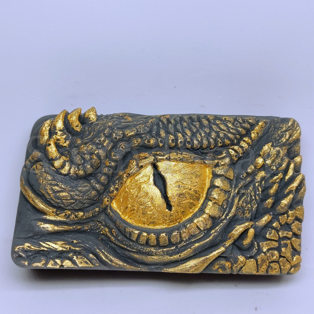 Same as the Pine Tar Soap, but made in the Dragoneye mould and decorated with a bit of gold mica.