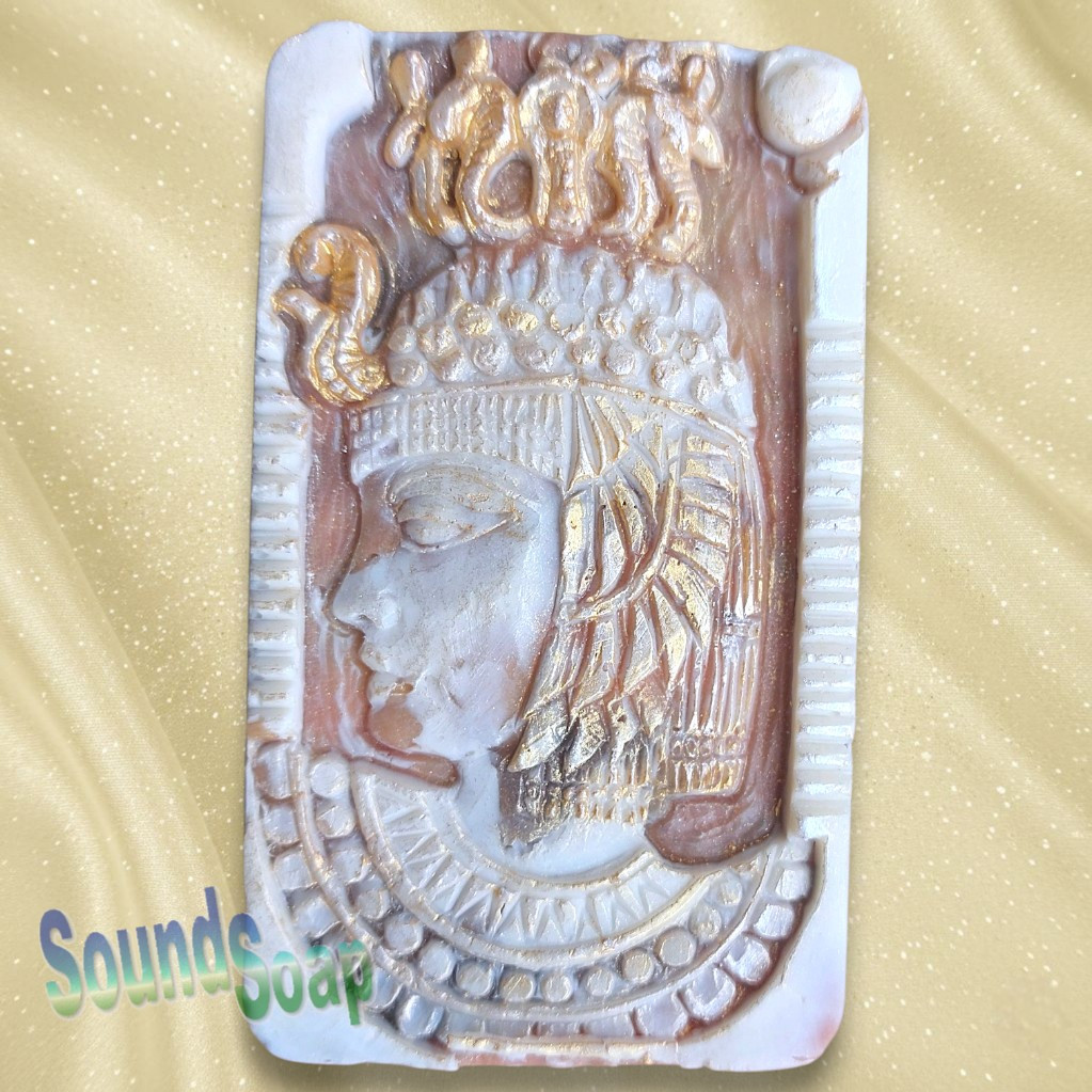 A regal artisan soap bar inspired by ancient royalty, showcasing intricate stone-effect textures.